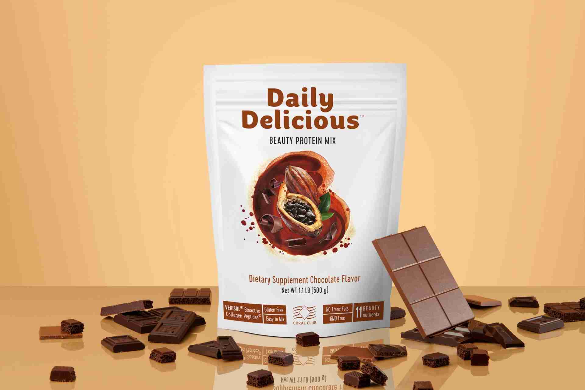 Daily Delicious Beauty Protein Mix uses collagen peptides from a leading manufacturer of innovative forms of collagen from Germany under the Verisol® brand.