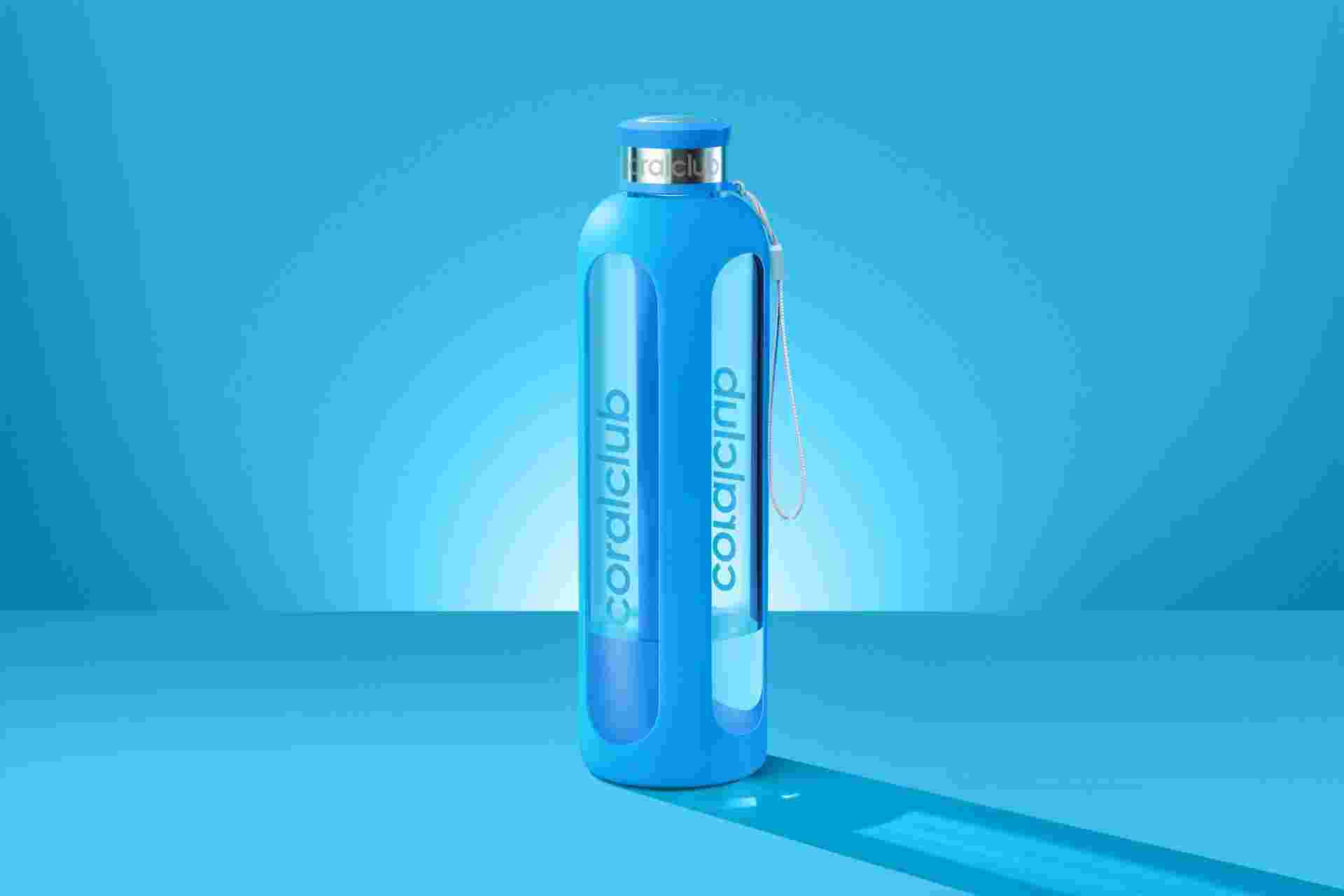 Clear Water glass bottle, Living Coral